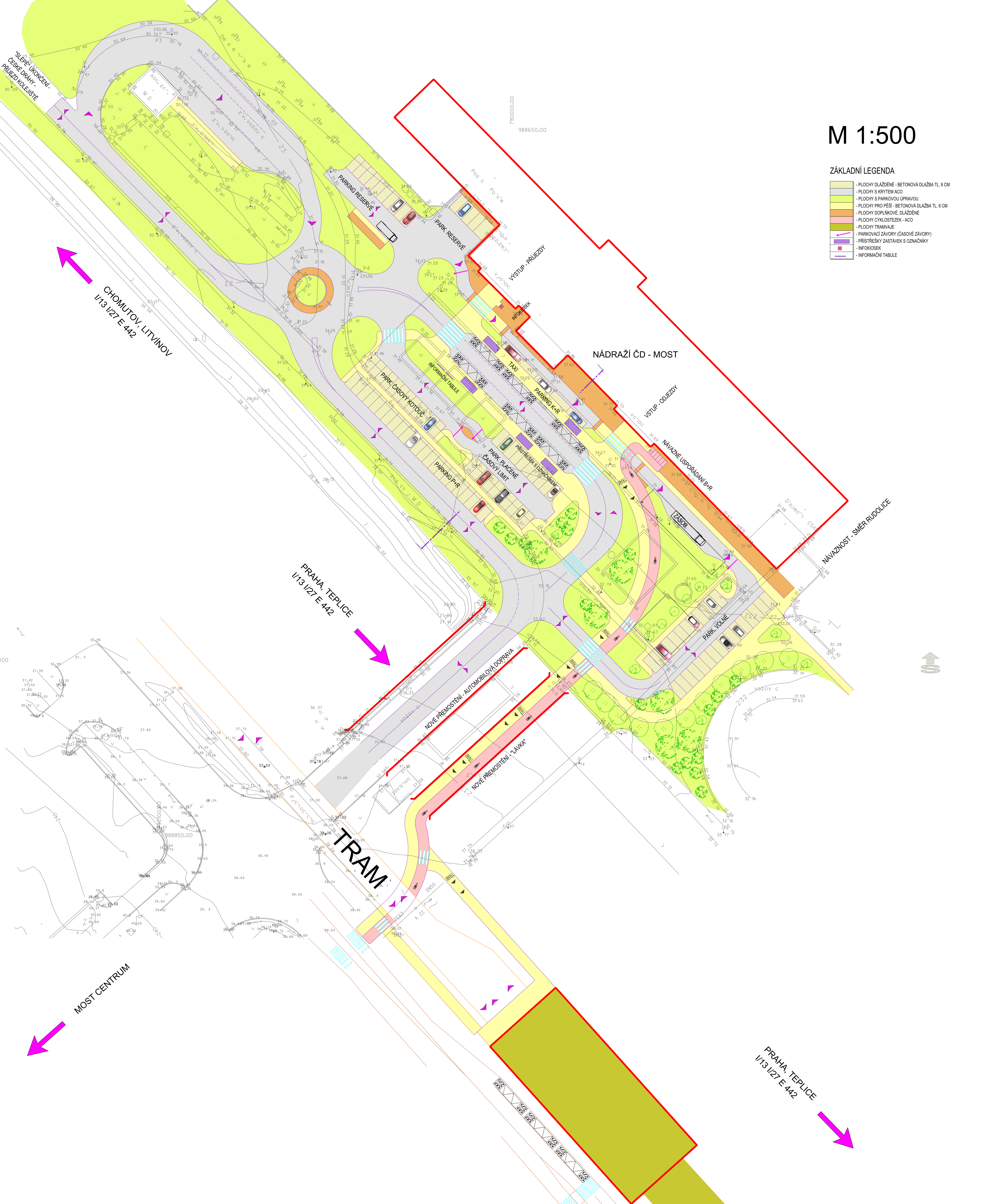 Cca před deseti lety zpracoval ing. Černý, za mé spolúčasti, návrh úpravy přednádražního prostoru v Mostě. Samozřejmě, na základě výběrového řízení o nejnižší ceně, DÚR zpracovala úplně jiná firma. Tak není možné zapracovat další „nezveřejněné“ (záměrně) úpravy, projekt není realizován. V roce 2010 jsem byl osloven na změnu řešení tak, aby bylo možné čerpat dotaci na vypsaný titul, a aby bylo možné, s využitím původní koncepce, prostor co nejlépe užívat veřejností.